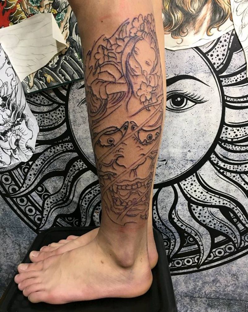 • T网红王老大花腿龙纹身图片_腿部新传统纹身图案