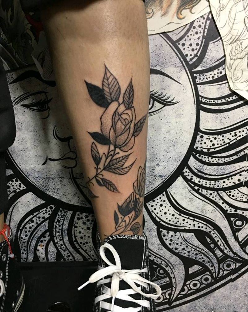 素花纹身图片_腿部纹身图案