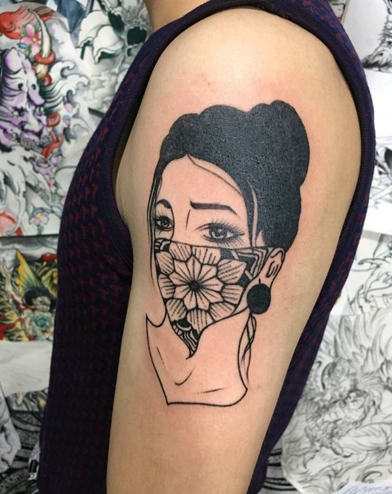 • 纹身吧推荐的披肩图腾半胛纹身图案作品展示