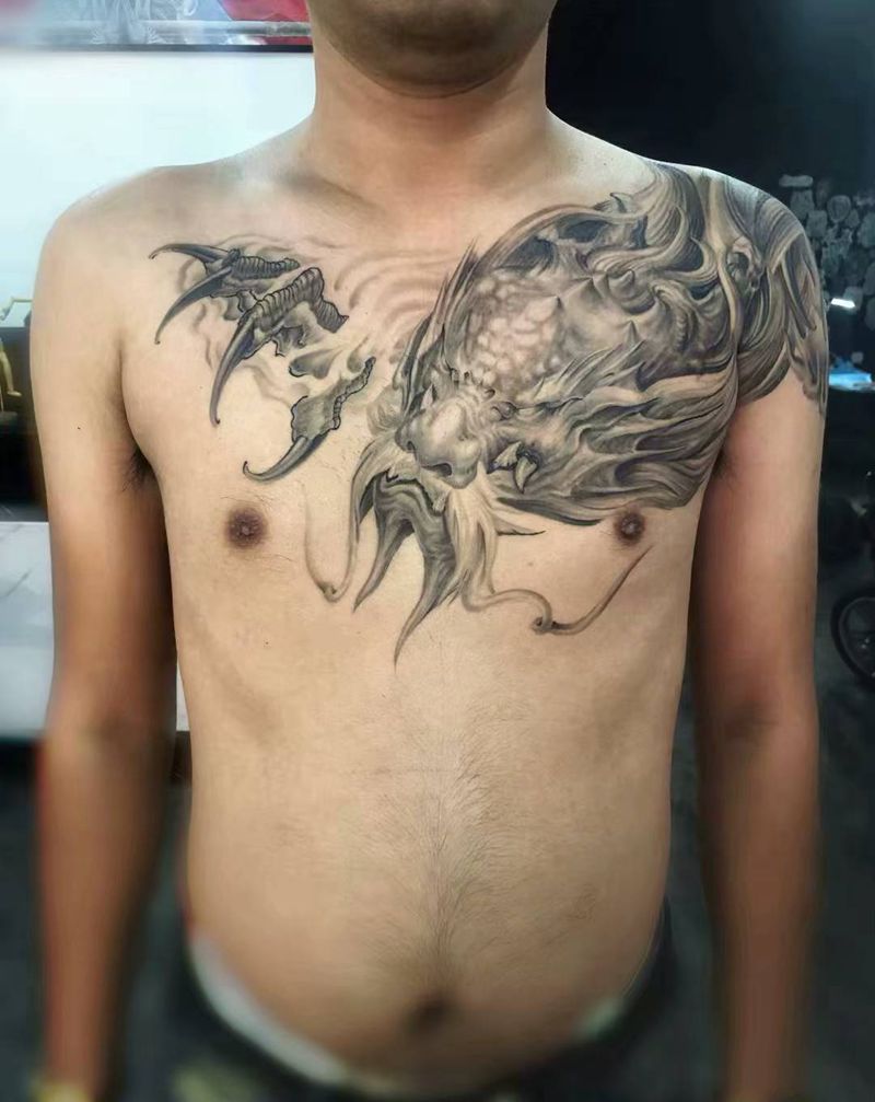 写实龙纹身图片_胸部欧美写实纹身图案