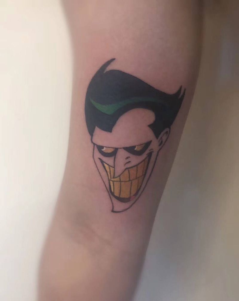 当前位置: 首页 >安徽省安庆市纹身店-辰针刺青处纹身图案>小丑纹身图片_手臂腿部New School纹身图案