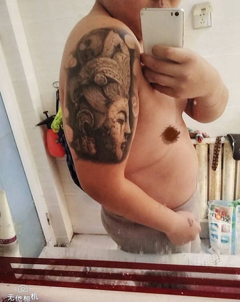 当前位置: 首页 >安徽省安庆市纹身店-辰针刺青处纹身图案>石雕佛像纹身图片_成品胸部腰部背部手臂腿部传统鬼神人物宗教纹身图案