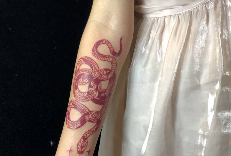 当前位置: 首页 >安徽省淮南市纹身店-雲.刺青纹身图案>女生纹身 ~ 蛇纹身图片_手臂Old School纹身图案