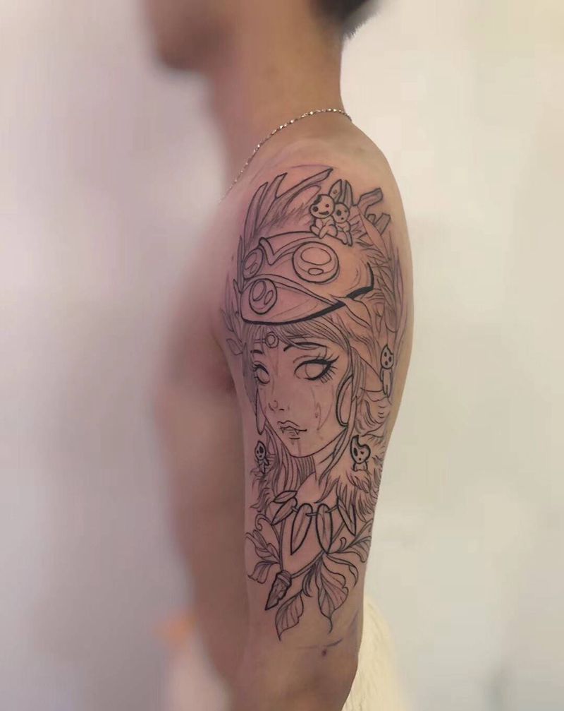 当前位置: 首页 >安徽省安庆市纹身店-辰针刺青处纹身图案>大臂幽灵公主纹身图片_手臂腿部New School纹身图案