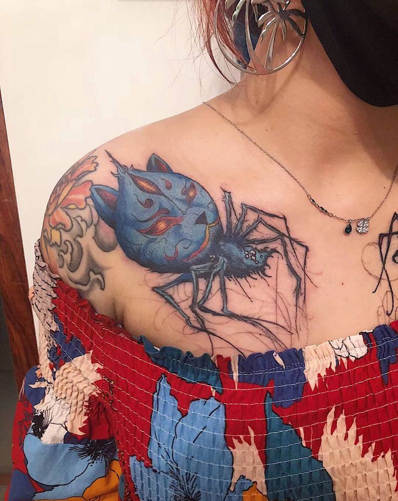 • 女性大花胸纹身_43张霸气漂亮的女性大花胸纹身图案作品