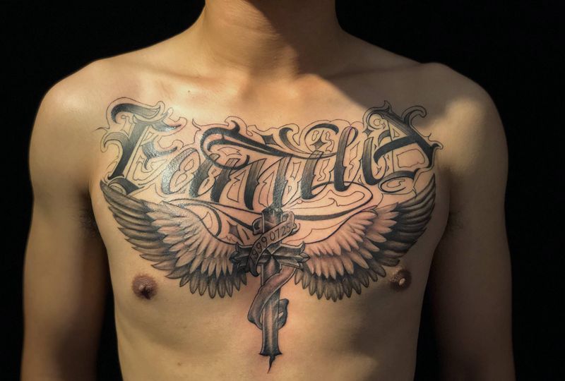 当前位置: 首页 >安徽省淮南市纹身店-雲.刺青纹身图案>花胸纹身图片_胸部花体字纹身图案