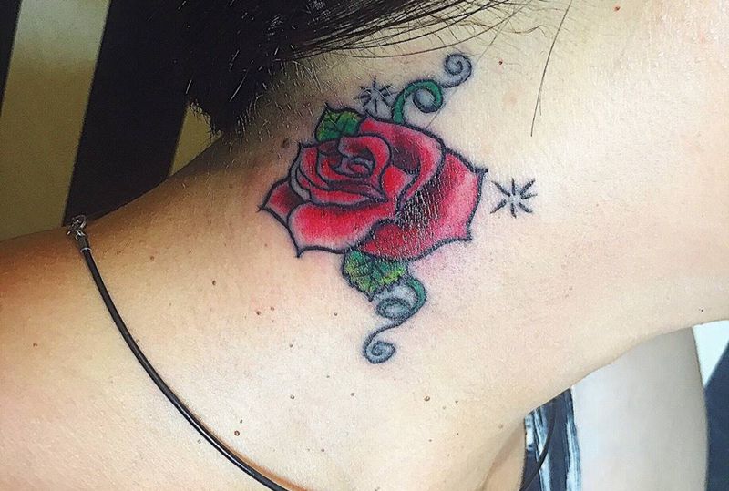 • 手背潮流时尚的玫瑰花眼睛纹身图案