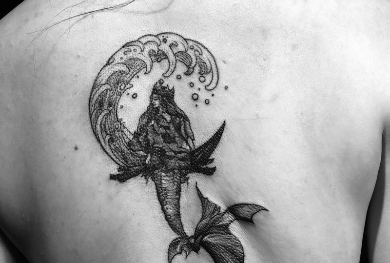 黑灰满背纹身图案