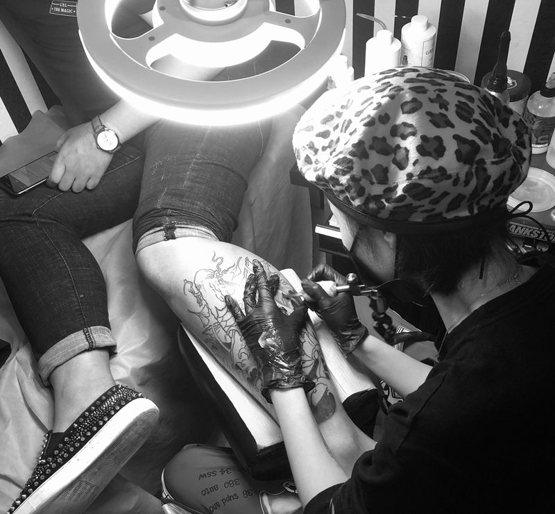 • T网红王老大花腿龙纹身图片_腿部新传统纹身图案