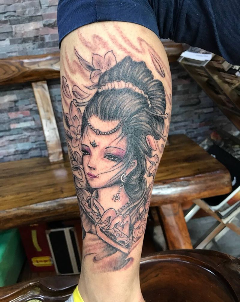 • T网红王老大花腿龙纹身图片_腿部新传统纹身图案