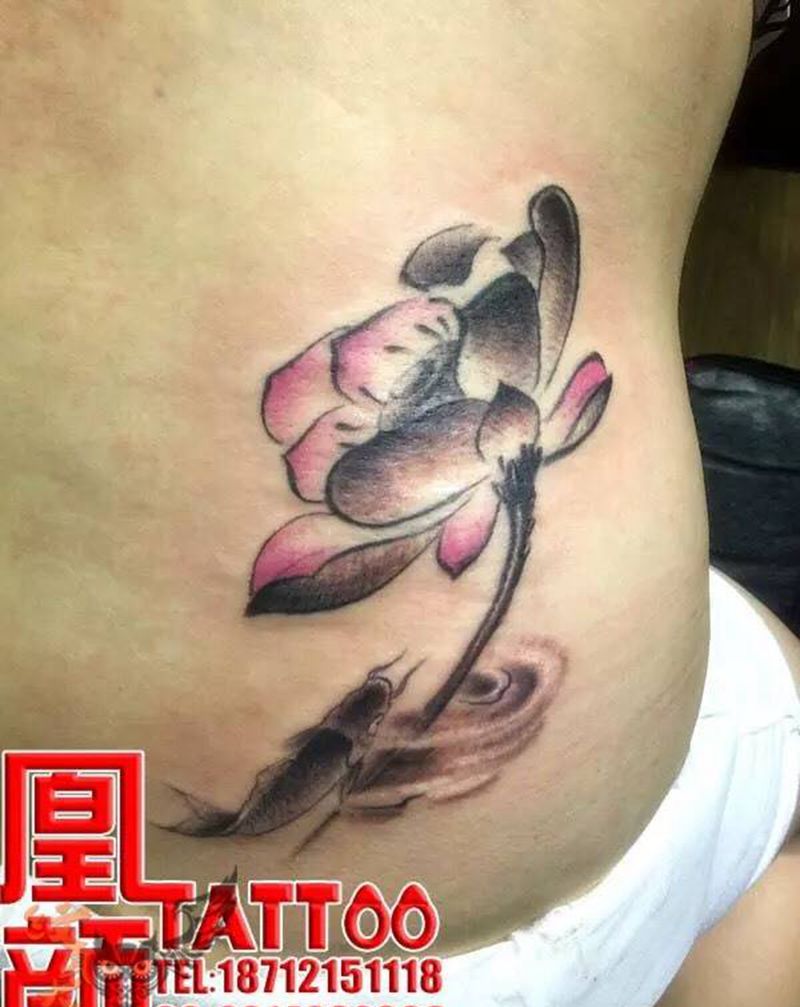 • 时尚性感的腹部莲花纹身图案