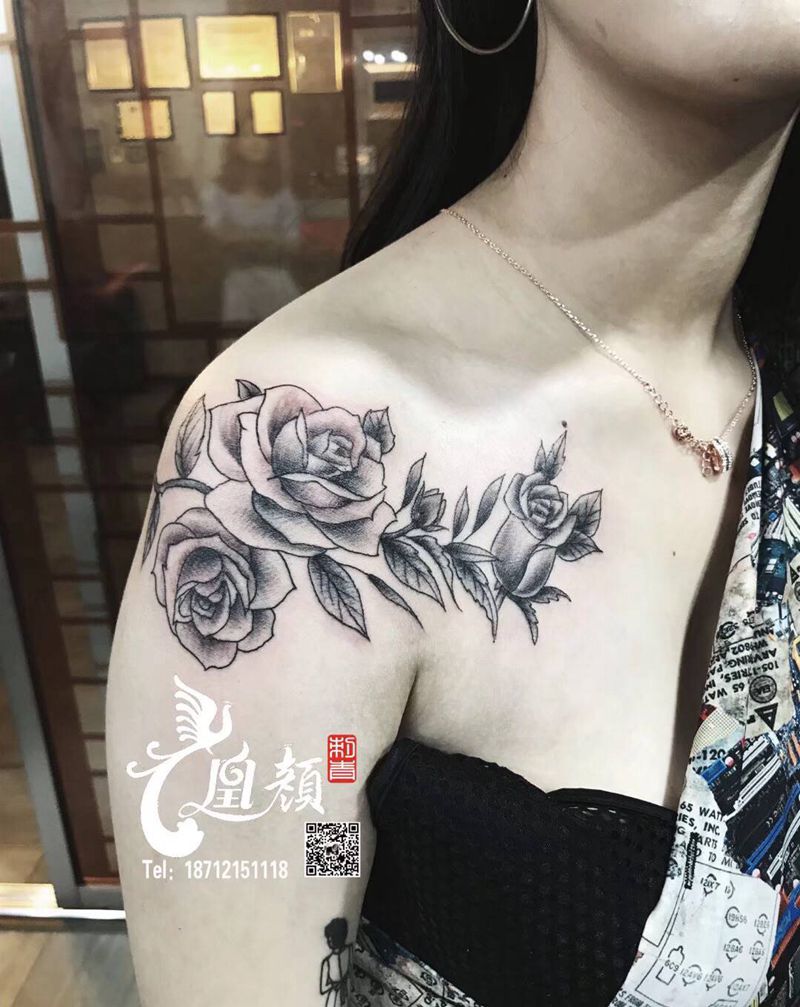 半甲纹身图片_肩部新传统纹身图案