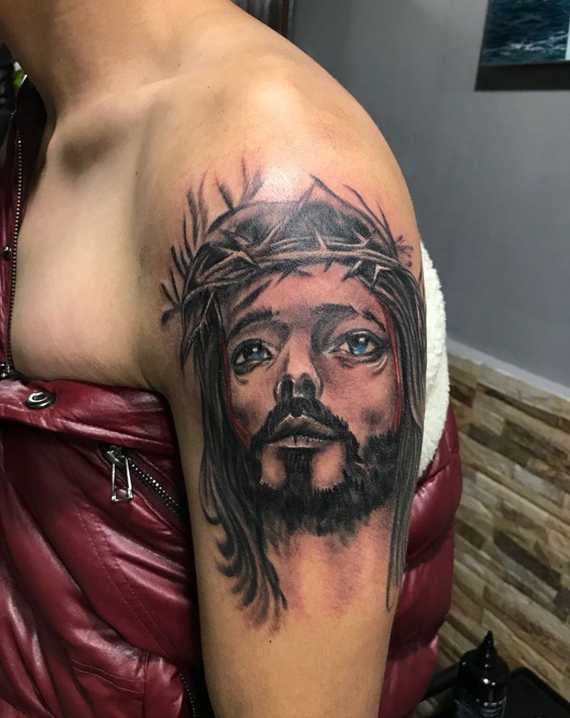 • 纹身吧推荐的披肩图腾半胛纹身图案作品展示