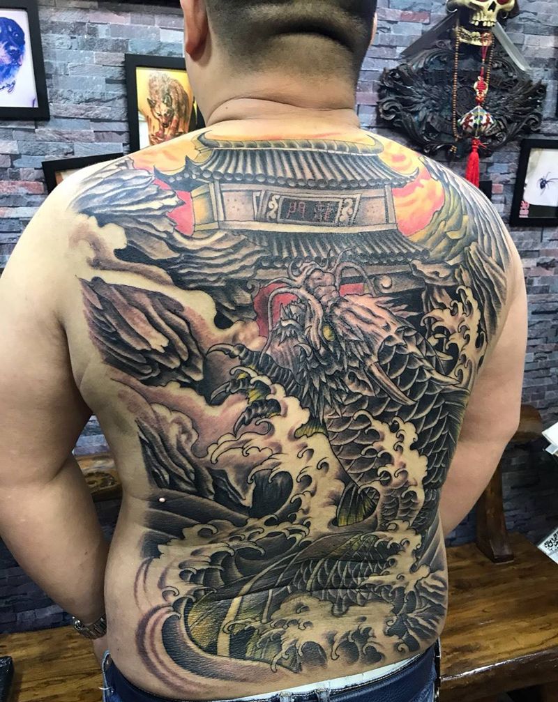 • T云龙九郎纹身图片_背部老传统云龙九郎纹身图案
