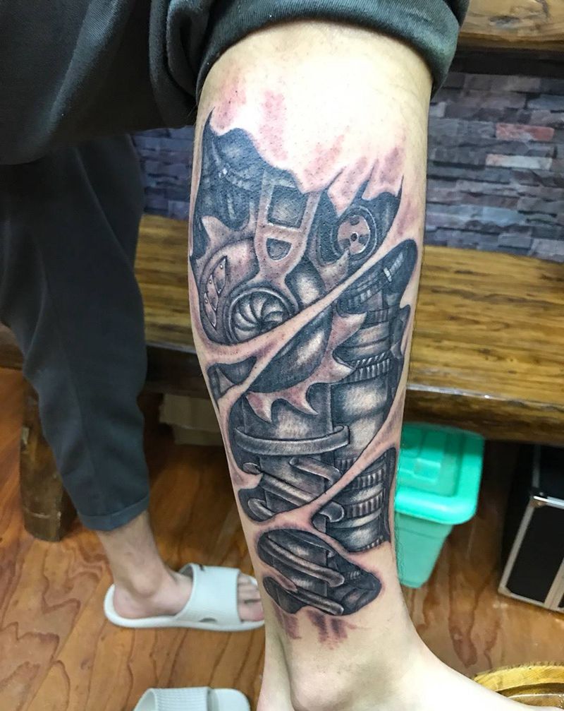 • T网红王老大花腿龙纹身图片_腿部新传统纹身图案