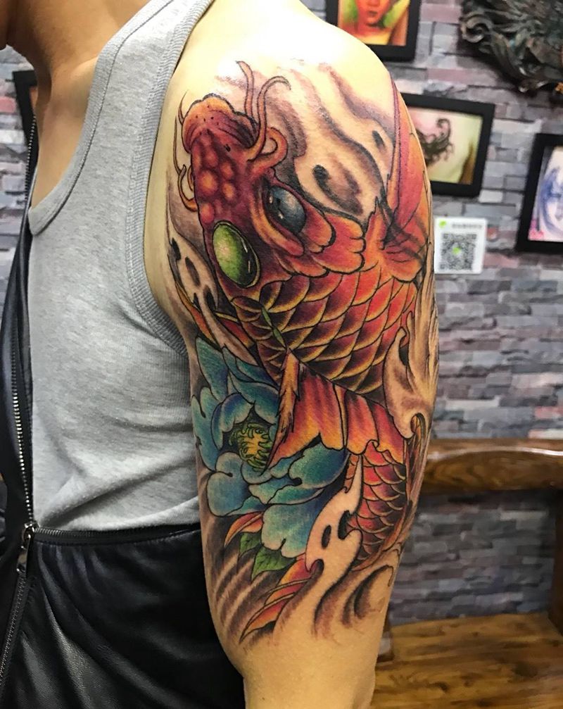 • T网红王老大花腿龙纹身图片_腿部新传统纹身图案