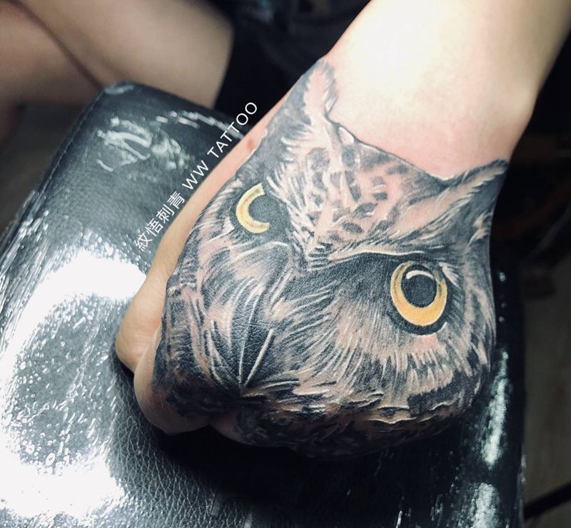 当前位置: 首页 >安徽省滁州市纹身店-紋悟刺青纹身图案>猫头鹰纹身图片_手部欧美写实纹身图案