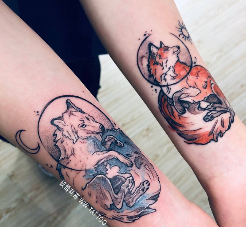 当前位置: 首页 >安徽省滁州市纹身店-紋悟刺青纹身图案>《冰与火》纹身图片_手部手臂点刺水彩狼狐狸动物纹身图案