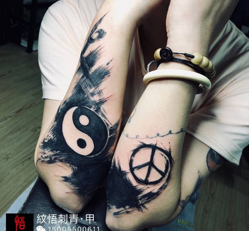 涂鸦太极纹身图片_成品手臂图腾宗教字符纹身图案