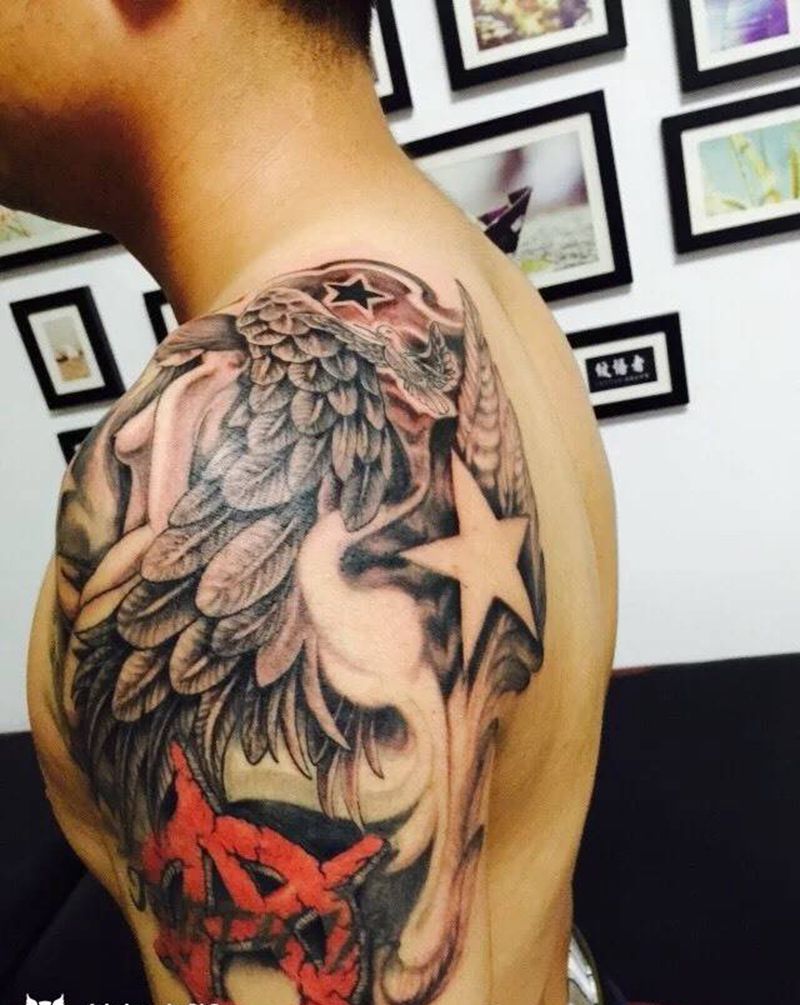 • 纹身吧推荐的披肩图腾半胛纹身图案作品展示