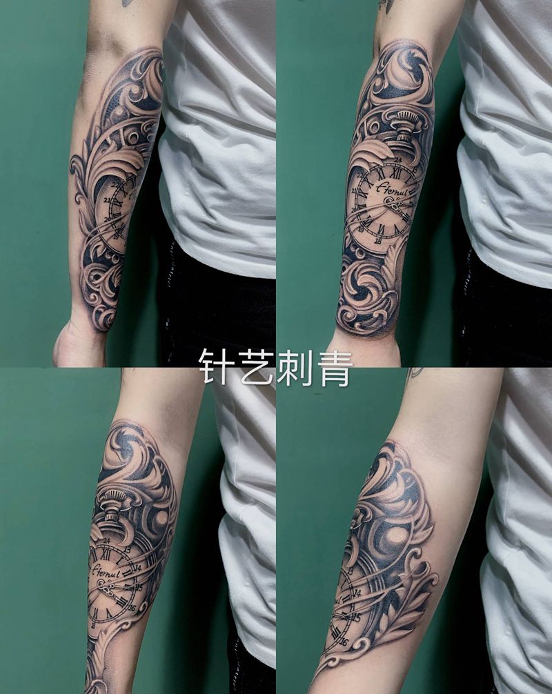 当前位置: 首页 >安徽省滁州市纹身店-针艺刺青工作室纹身图案>欧美写实时钟纹身图片_手臂纹身图案