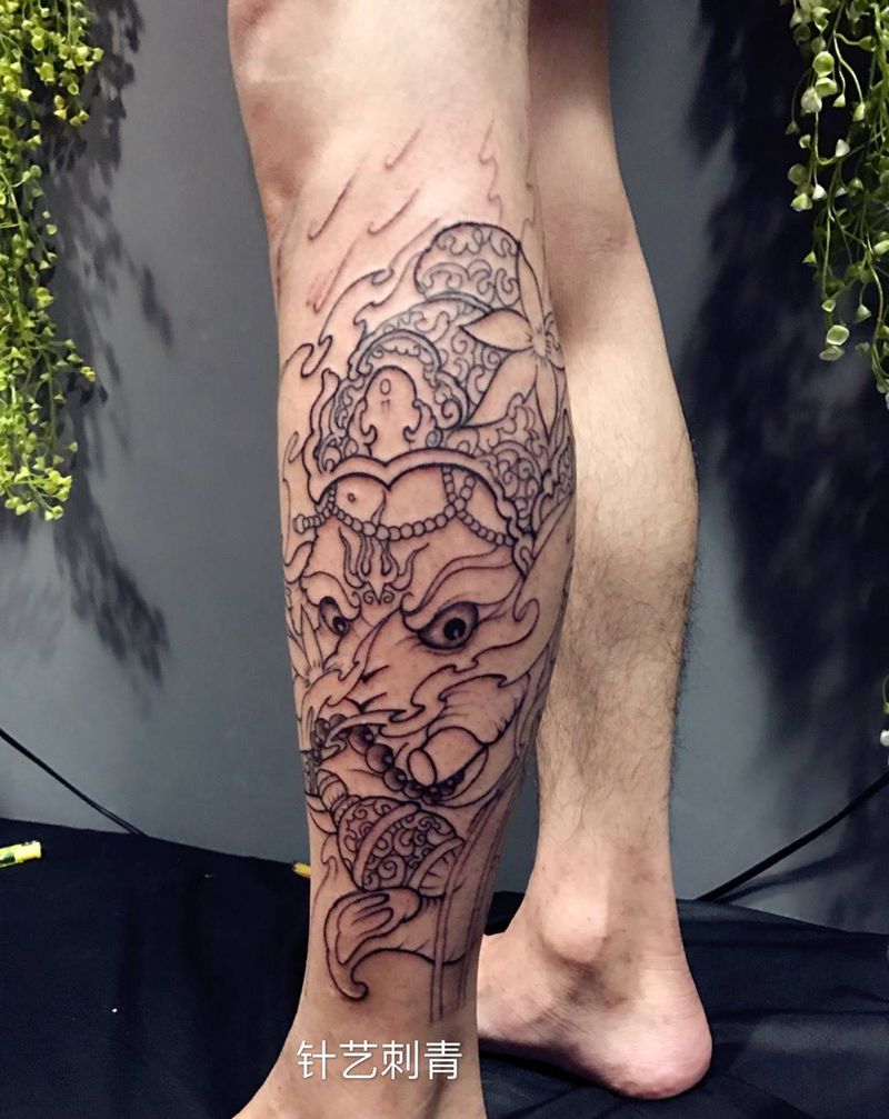 当前位置: 首页 >安徽省滁州市纹身店-针艺刺青工作室纹身图案>包小腿象神纹身图片
