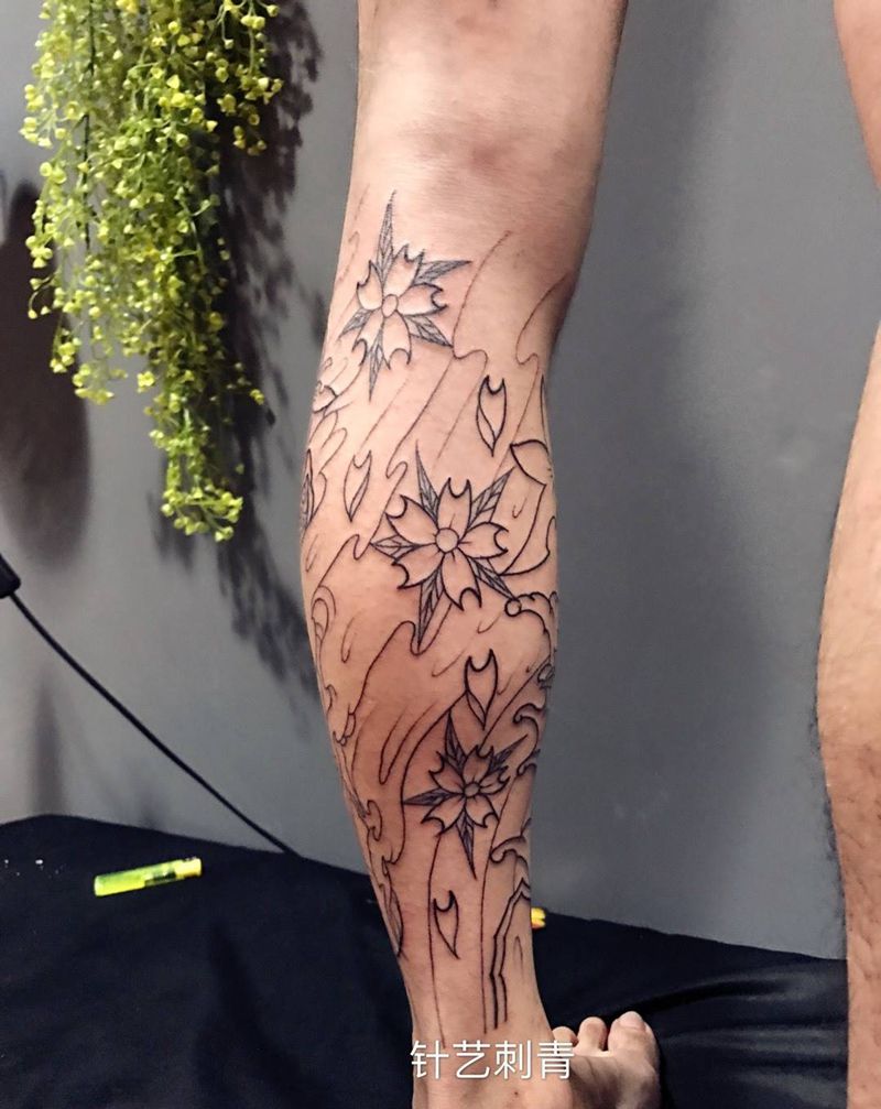 • T网红王老大花腿龙纹身图片_腿部新传统纹身图案