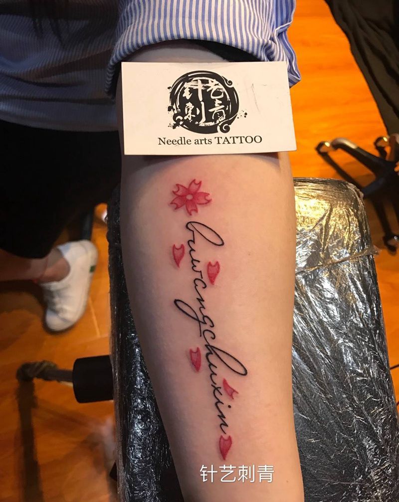 当前位置: 首页 >安徽省滁州市纹身店-针艺刺青工作室纹身图案>小清新字母樱花纹身图片