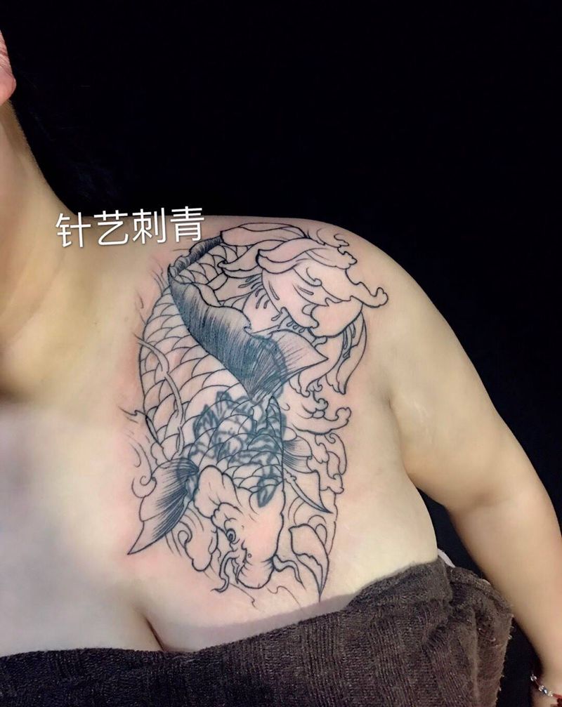 • 女性大花胸纹身_43张霸气漂亮的女性大花胸纹身图案作品