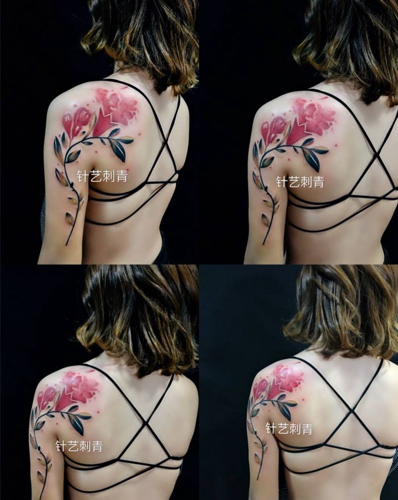 水墨花纹身图片