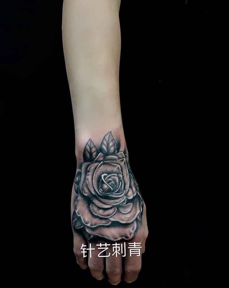 • 手背潮流时尚的玫瑰花眼睛纹身图案