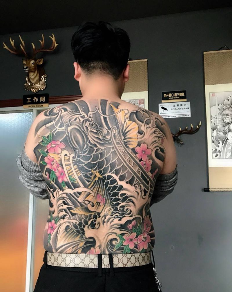 当前位置: 首页 >安徽省滁州市纹身店-针艺刺青工作室纹身图案>满背锦鲤纹身图片