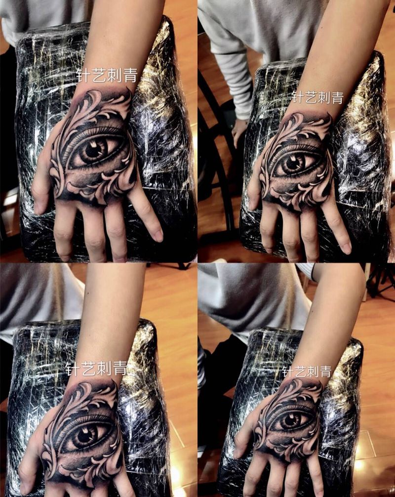 • 手背潮流时尚的玫瑰花眼睛纹身图案