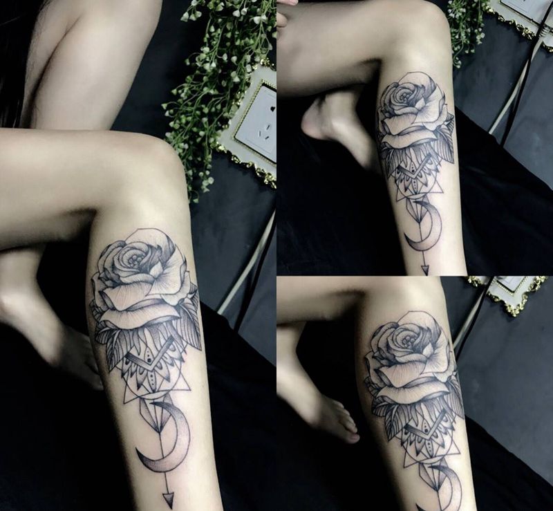 • T网红王老大花腿龙纹身图片_腿部新传统纹身图案