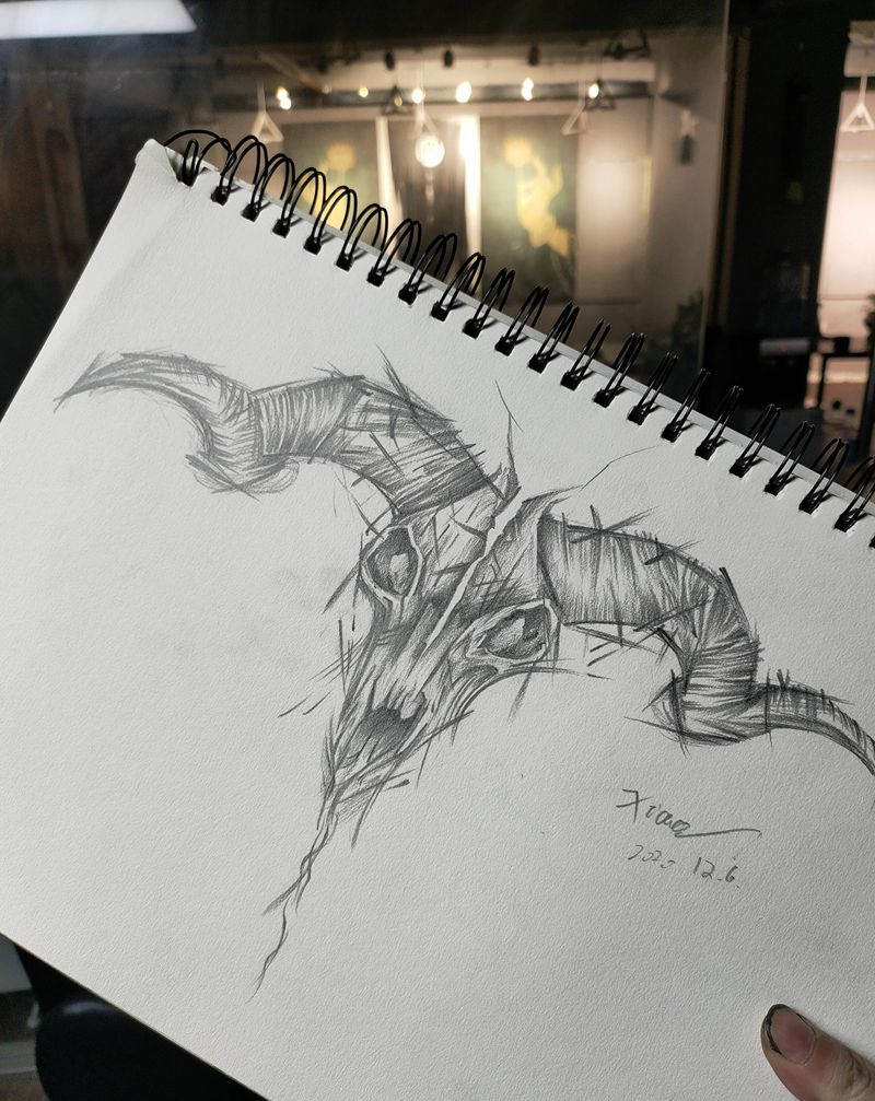 当前位置: 首页 >安徽省阜阳市纹身店-枭·纹图工作室纹身图案>羊头设计(暗黑)纹身图片_背部点刺纹身图案