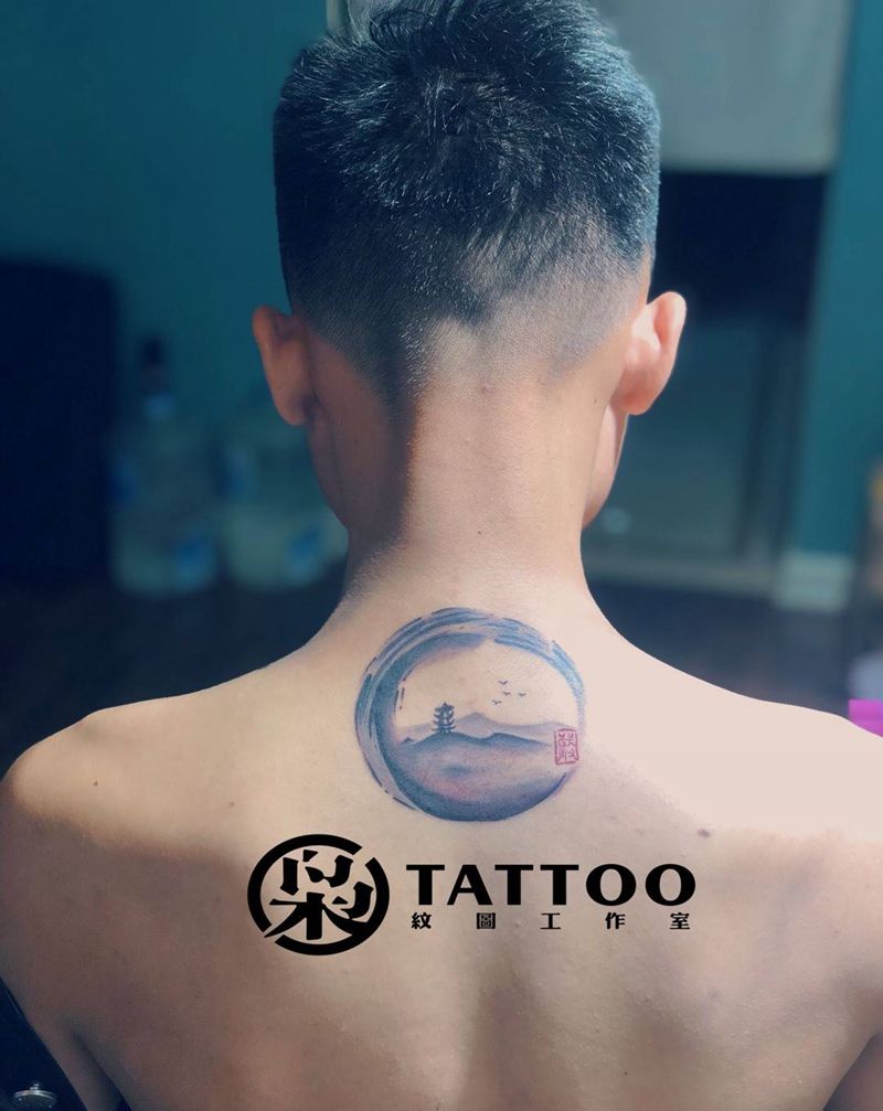 当前位置: 首页 >安徽省阜阳市纹身店-枭·纹图工作室纹身图案>新中式水墨山水纹身图片_颈部纹身图案