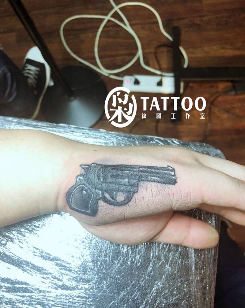 当前位置: 首页 >安徽省阜阳市纹身店-枭·纹图工作室纹身图案>手枪遮盖纹身图片_手部纹身图案