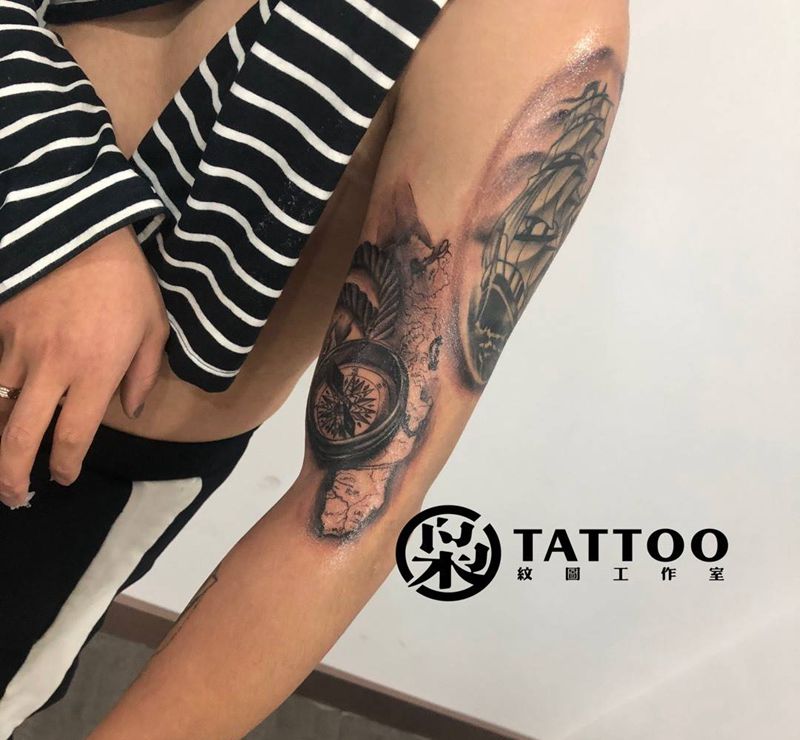 当前位置: 首页 >安徽省阜阳市纹身店-枭·纹图工作室纹身图案>欧美写实罗盘纹身图片_手臂纹身图案