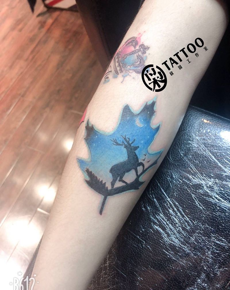 当前位置: 首页 >安徽省阜阳市纹身店-枭·纹图工作室纹身图案>夜空鹿纹身图片