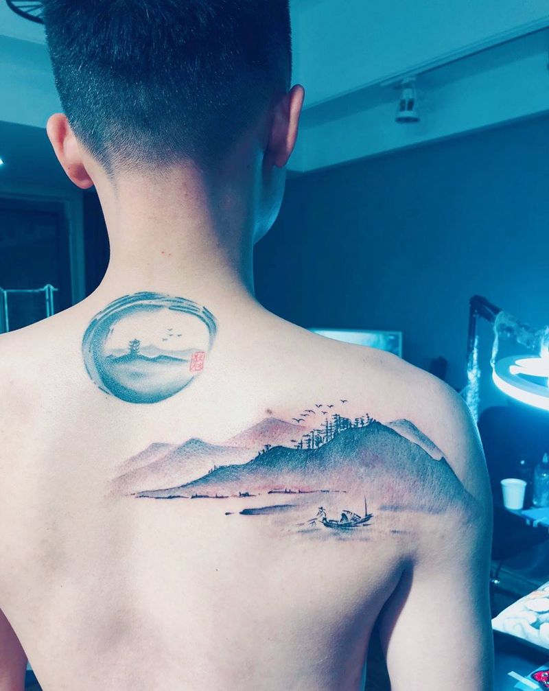 当前位置: 首页 >安徽省阜阳市纹身店-枭·纹图工作室纹身图案>山水纹身图片
