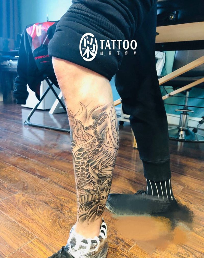 • T网红王老大花腿龙纹身图片_腿部新传统纹身图案