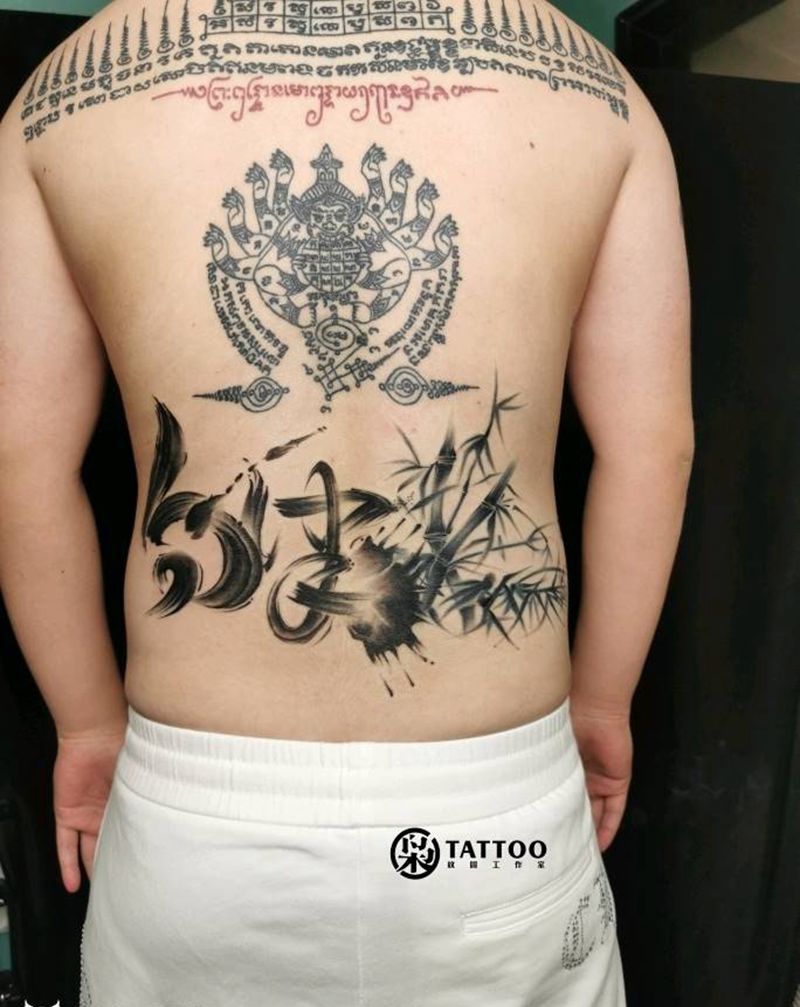 当前位置: 首页 >安徽省阜阳市纹身店-枭·纹图工作室纹身图案>原创书法纹身图片_背部水墨纹身图案
