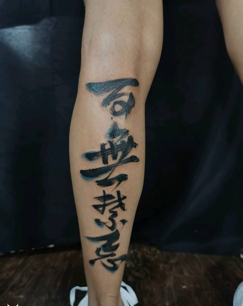 当前位置: 首页 >安徽省阜阳市纹身店-枭·纹图工作室纹身图案>书法纹身图片_腿部水墨纹身图案
