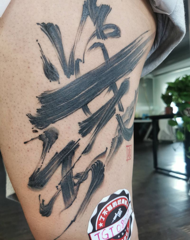 当前位置: 首页 >安徽省阜阳市纹身店-枭·纹图工作室纹身图案>书法纹身图片_腿部水墨纹身图案