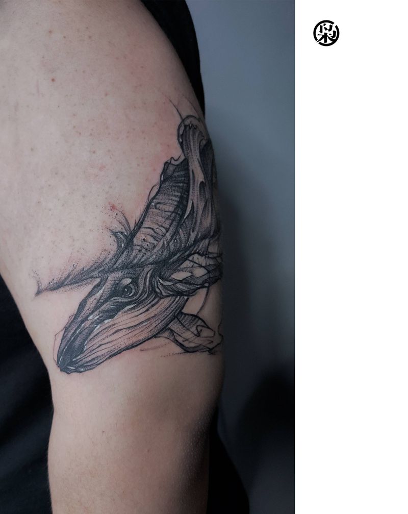 当前位置: 首页 >安徽省阜阳市纹身店-枭·纹图工作室纹身图案>鲸鱼纹身图片_手臂点刺纹身图案