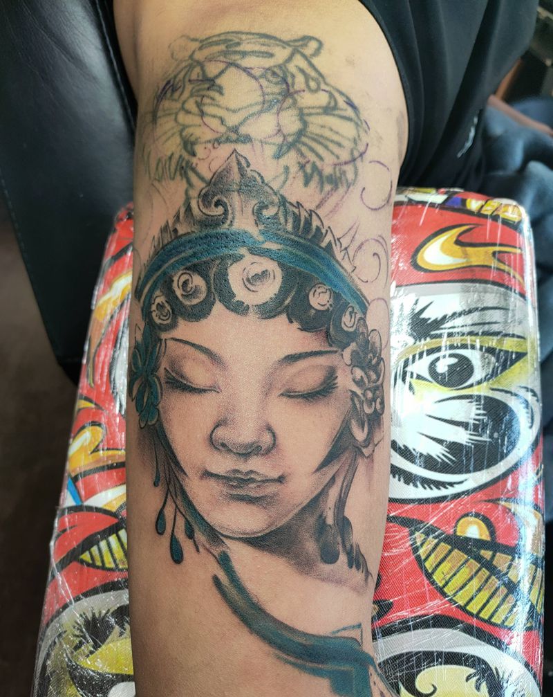 当前位置: 首页 >安徽省阜阳市纹身店-枭·纹图工作室纹身图案>花旦纹身图片_手臂水墨纹身图案