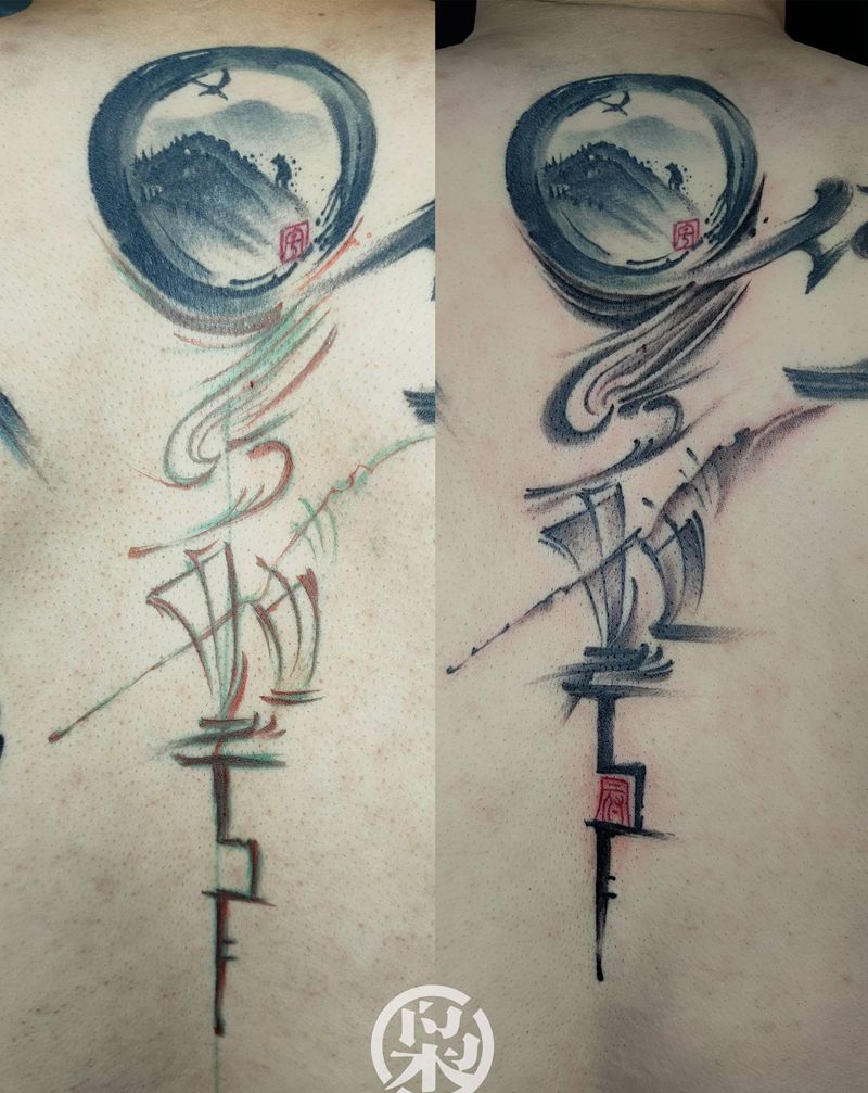 当前位置: 首页 >安徽省阜阳市纹身店-枭·纹图工作室纹身图案>中国风水墨书法纹身图片_腹部背部水墨纹身图案