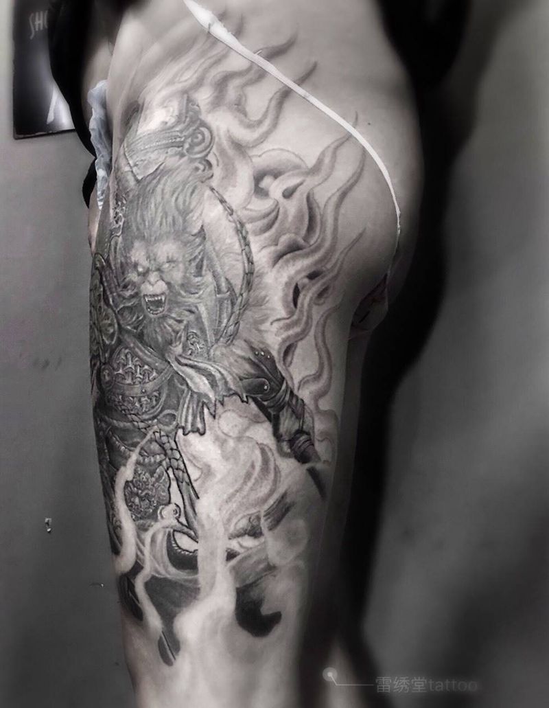 黑灰满背纹身图案