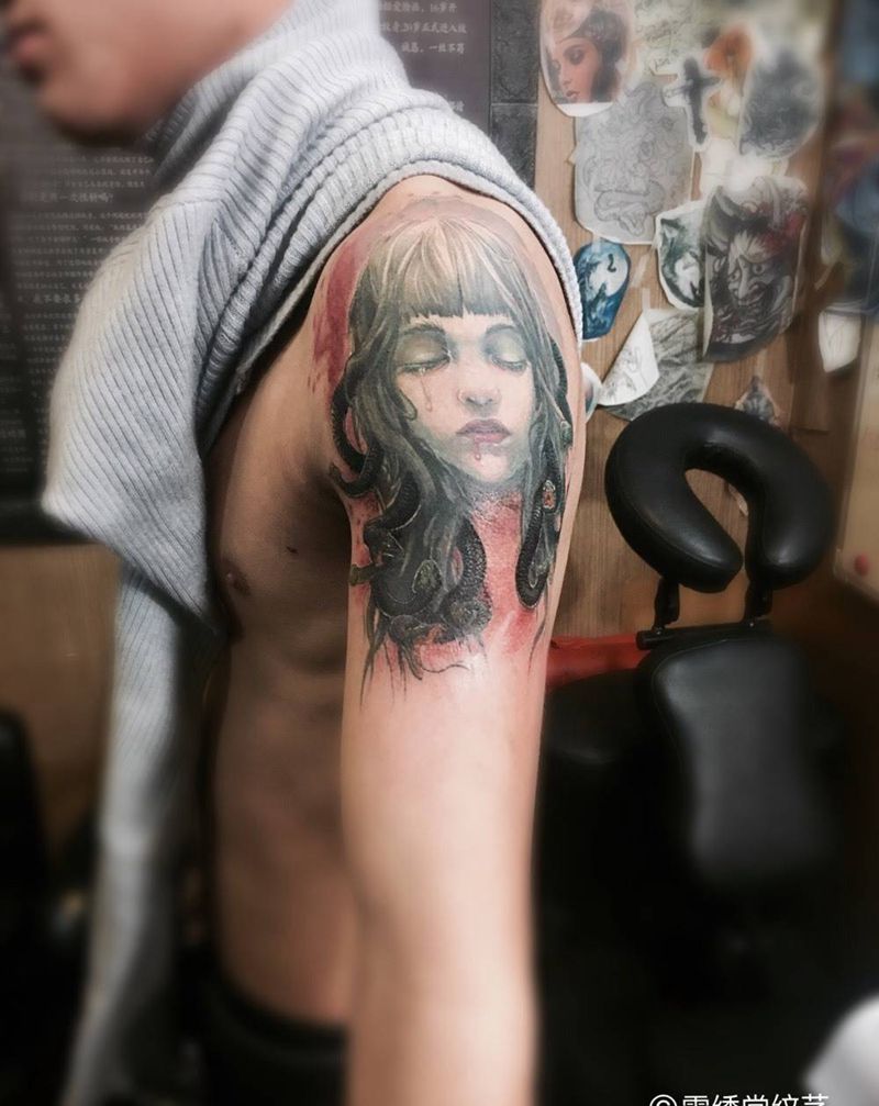 美杜莎完工!小伙到了极限下面做的有点着急了纹身图片