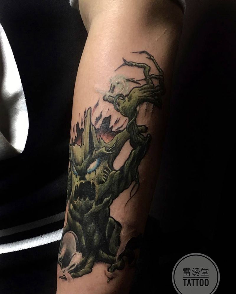 当前位置: 首页 >安徽省阜阳市纹身店-临泉雷绣堂艺术纹身工作室纹身图案>修改遮盖{树妖}树精灵-无字碑-来自地狱的树妖。耗时5:00纹身图片
